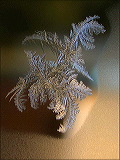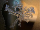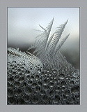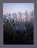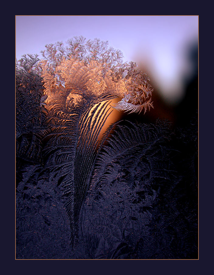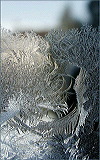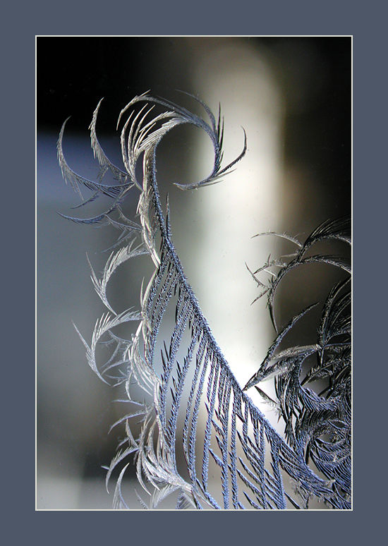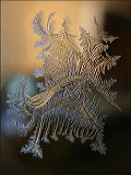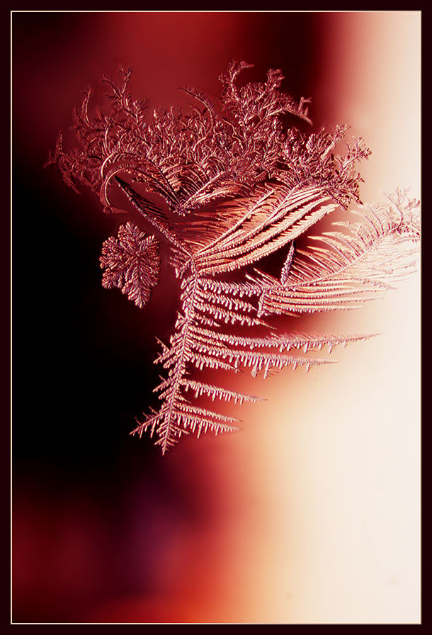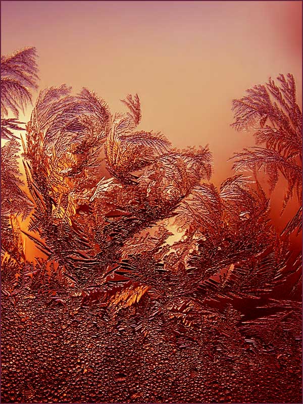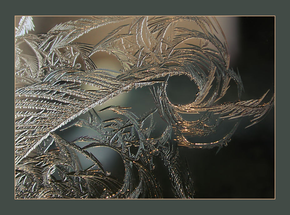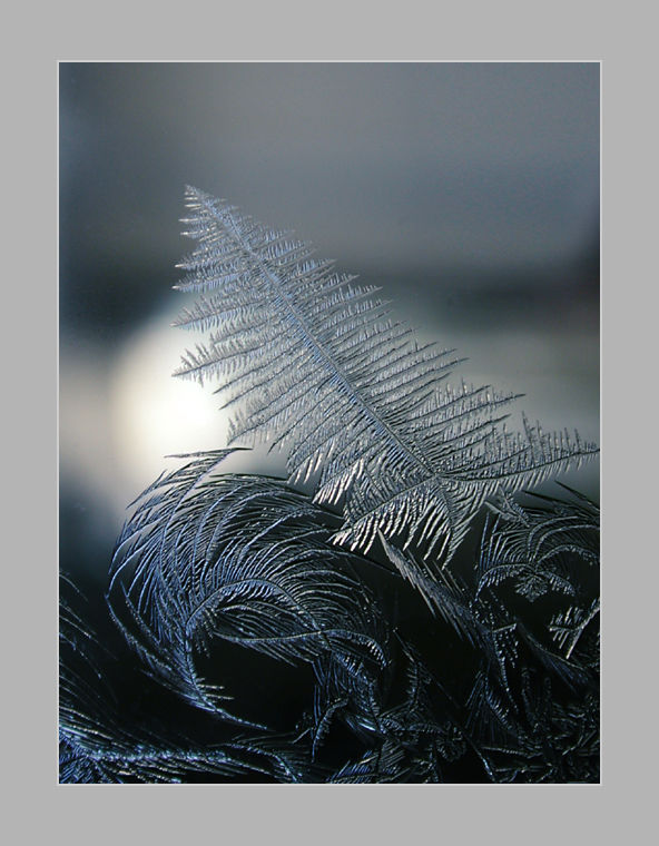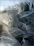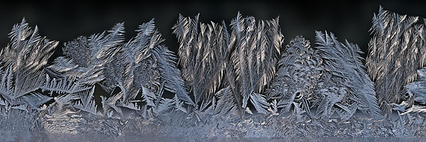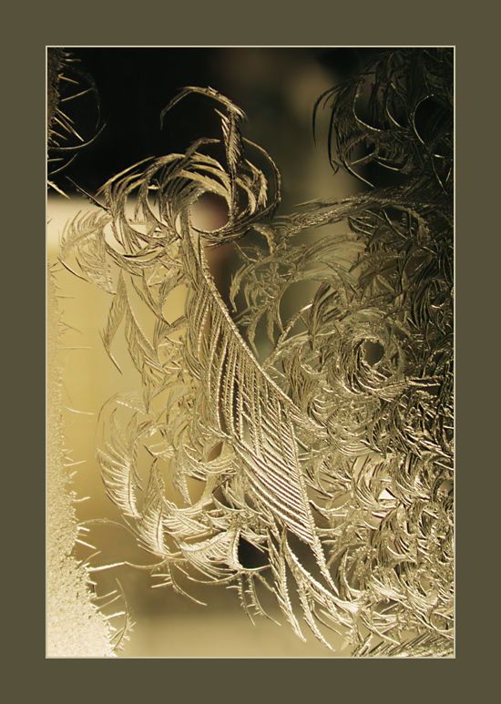 The frost crystals grew between unsealed panes of double-glazed windows as the temperature dropped from about -10˚C to -20˚C. The windows have since been replaced.